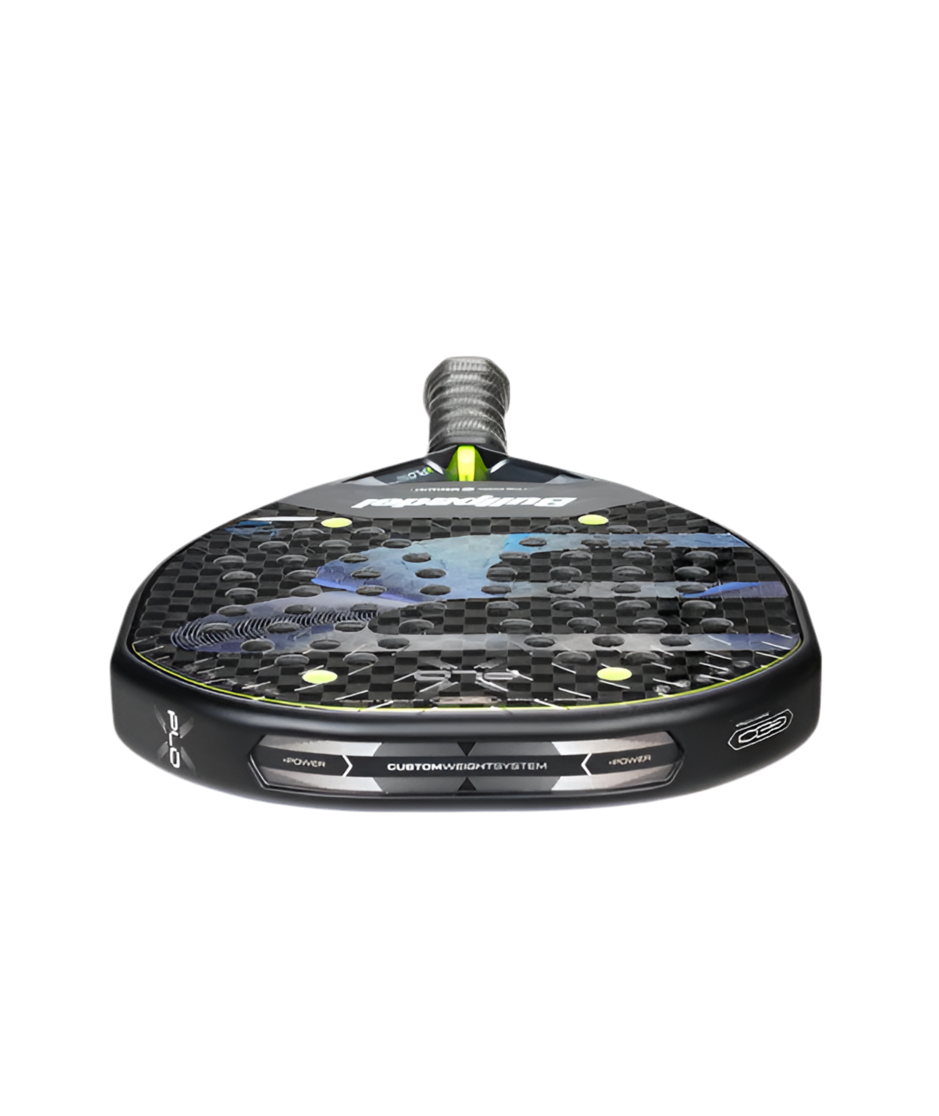 La XPLO es la pala más potente en la historia de Bullpadel. Creada para llevar a Martín Di Nenno a la cima, esta pala te ofrece una explosión de potencia en cada golpe. Con las últimas innovaciones del Bullpadel Lab, redefine tu concepto de fuerza y domina la pista con total control. Perfecta para jugadores profesionales y avanzados que buscan sacar el máximo provecho de cada tiro, esta pala está lista para poner la cancha a tu favor. Especificaciones: - Peso: 365-375 G - Grosor: 38 mm - Balance: aproximadamente 26.5 cm - Forma: Geométrica - Superficie de golpeo: 535 cm² - Composición exterior: X-Tend Carbon 12K - Composición interior: Multieva - Jugador: Profesional - Estilo: Ofensivo