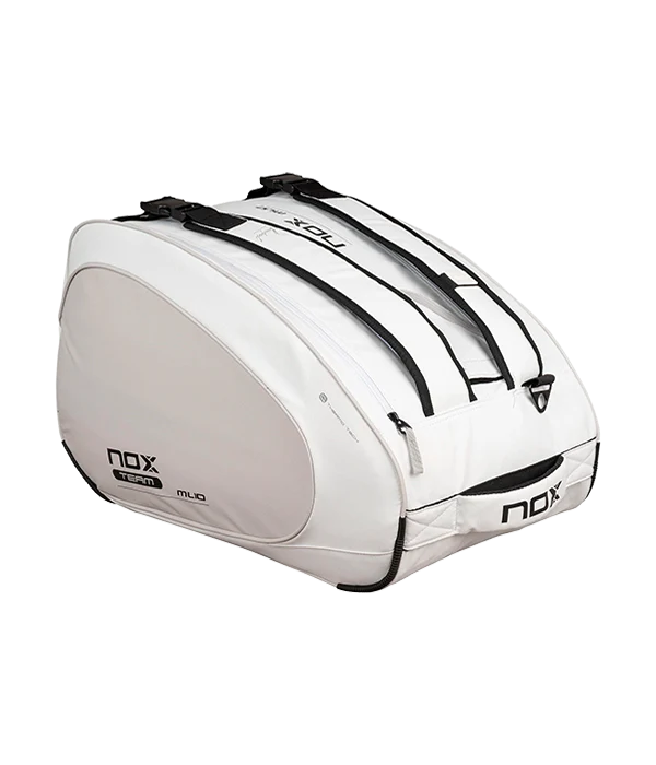 Descubre la nueva bolsa de palas TEAM con materiales de alta calidad y un diseño completamente renovado. El modelo ML10 ha sido diseñado específicamente para el renombrado jugador carismático: el Canoso de Bahía Blanca, Miguel Lamperti. La bolsa de raqueta Team está diseñada para que puedas llevar todo lo que necesitas a tus partidos y torneos con el mayor estilo. En color blanco y gris, cuenta con compartimento principal de doble cremallera para un fácil acceso al interior y capacidad para 4 palas de pádel, ropa, etc. Además, tiene un compartimento térmico con la tecnología NOX ThermoTech que permite guardar 2 palas de pádel, botellas, etc. y un compartimento lateral con bolsillos distribuidos para accesorios como celular, billetera y llaves. Incluye una bolsa para la ropa sucia.